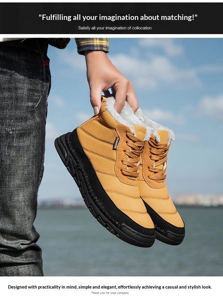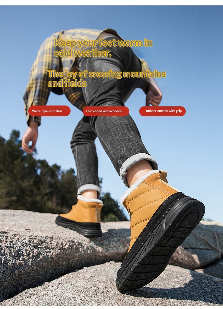 Mens Mid-Cut Snow Boots With Cotton-Lined Non-Slip Outsoles